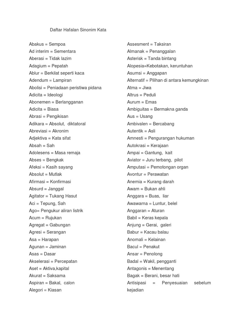 Daftar Hafalan Sinonim Kata Pdf